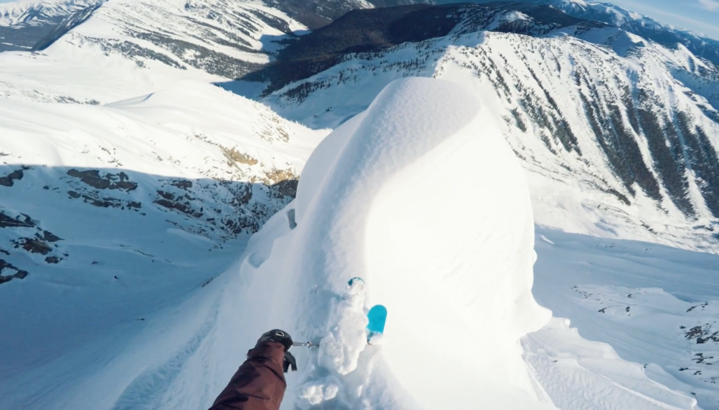 Dave Treadway is used to skiing steep, exposed faces and hanging out on ridges far above the valley floor. However, this particular line brought him to the edge, quite literally, as the entrance involved a particularly spooky traverse that he had to inch across. Standing atop the massive spine line, he says he looked for any excuse possible not to ski it, but Mother Nature let him have it.