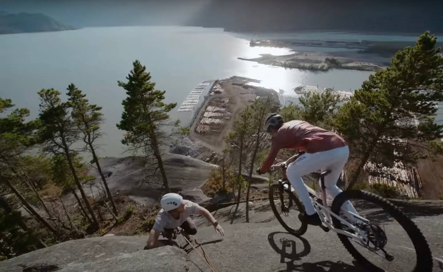 Pro Biker Kilian Bron Passes Rock Climber in Stunning New Edit