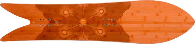 Gentemstick's Rocket Fish High Performance board can be described in one word: nimble. Its innovative fish tail design coupled with its short 147 cm length make this board a snow-surfing guru. Gentem explains, "The bamboo-core promises a strong snapback and the deep fish tail a distinct maneuverability. The super short and super fat outline assures extraordinary carving ability and an incredible sense of speed. The riding image of this board mirrors the one of surfing down-the-line in a fast-breaking wave. It will swim like a fish, surfing natural halfpipes as if on a reeling reef break. Rip sidebanks in the resorts and carve like a razorblade on the groomers. The Rocketfish: the ultimate snowsurfboard for the true snowsurfer." We couldn't have said it better ourselves, but our reviewer did a nice job.