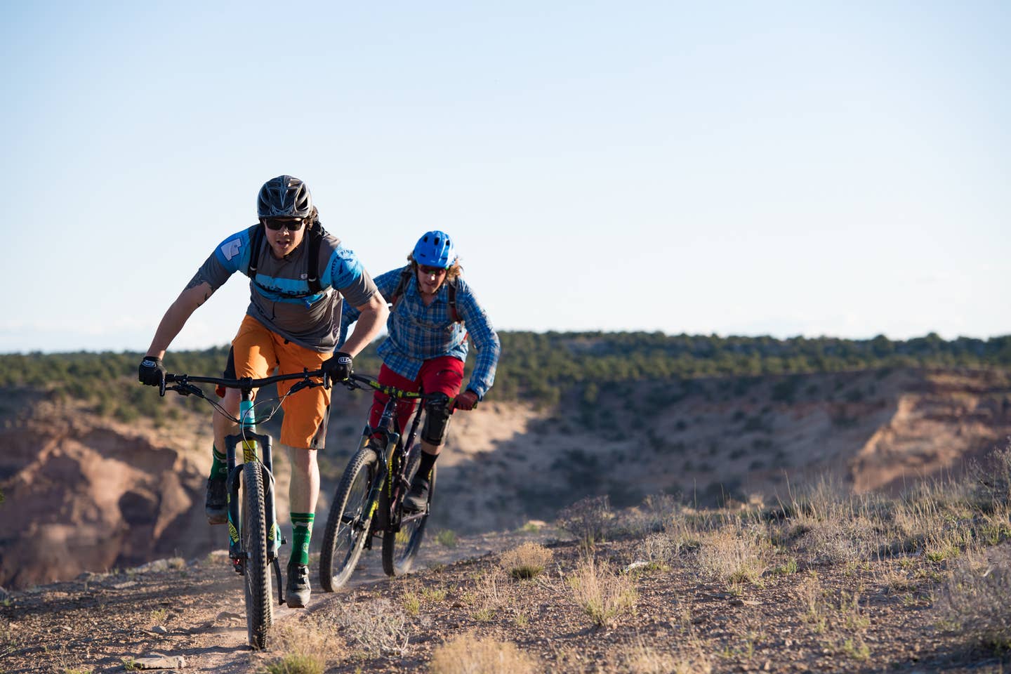 We cruise over to the Wedge Overlook and take in the morning view, while discussing the best way to start our ride. The eastern and western sections of the Good Water Rim trail are substantially different in look and feel, but the format is the same. Ride the rim, pedal hard and fast, create flow, and don't forget the views.