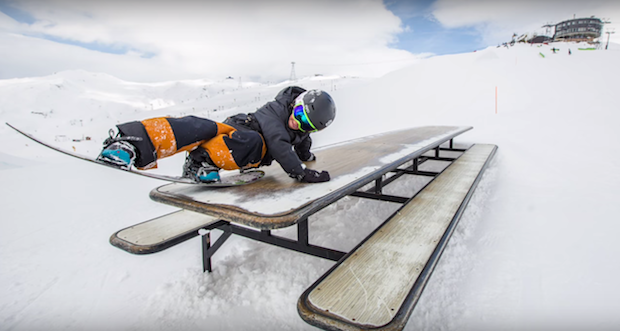6 Year Old Snowboarder Tailslides and Hits Rails