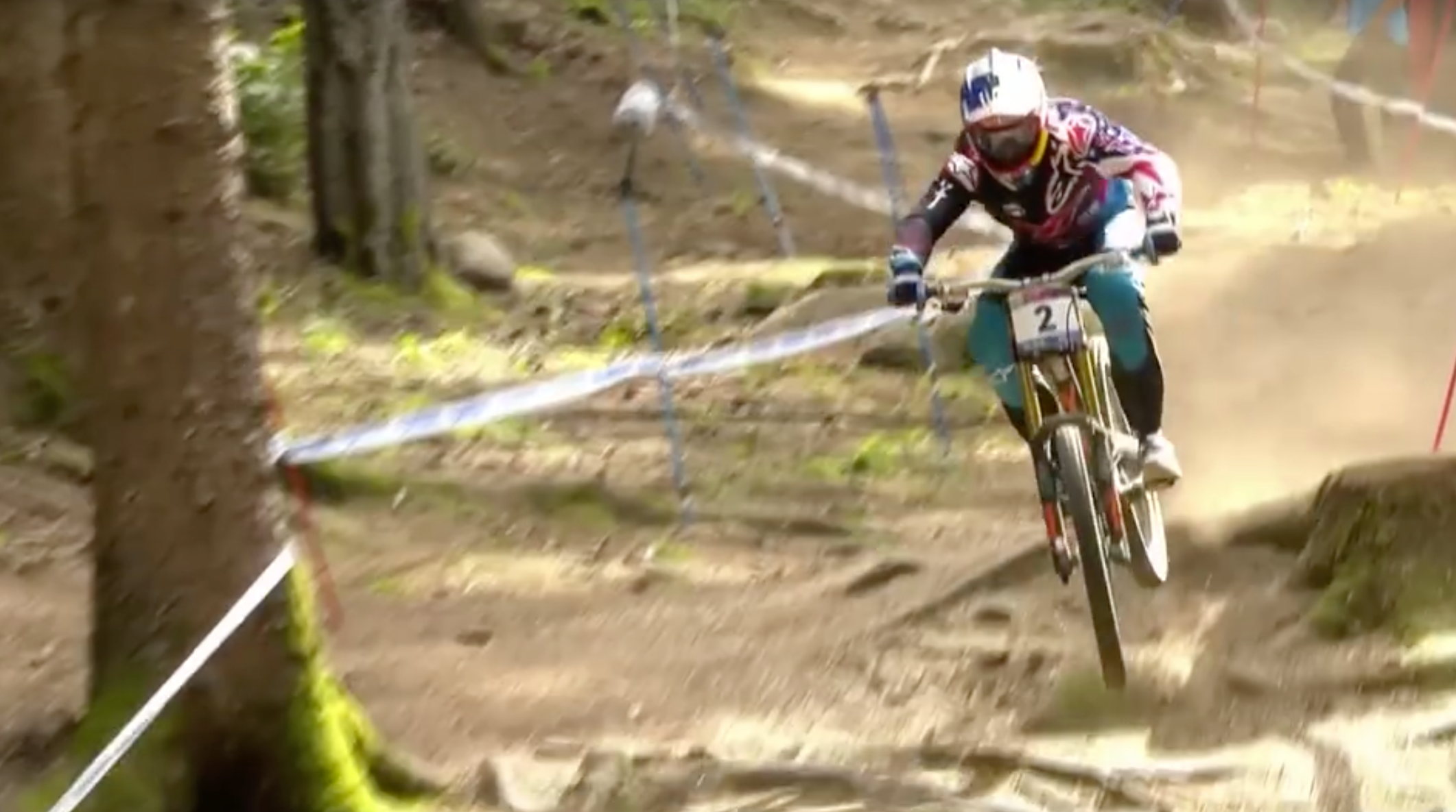Aaron Gwin is an animal. After putting down yet another mind-melting run to win in Val di Sole on Saturday, Gwin had enough points to clinch the overall UCI DH title. The rather technical track, which claimed his rival Greg Minnaar’s frame in practice and his tire in the final, was no match for Gwin, who dropped in last and saw green numbers the whole way down.