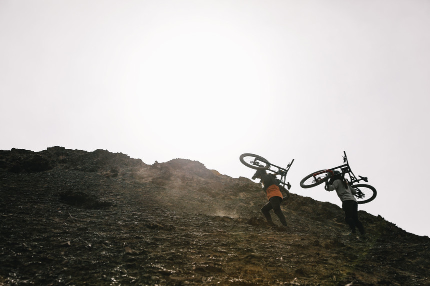 HB: It's all big mountain riding. We would just look at the terrain and isolate a starting point and the piece together a route down. A lot of the riding we found was this rocky scree, which fun to slash and kick up dirt while you're riding down. Some of it was more conducive for features, so we ended up building little hits. With everything we did, it was about interpreting the terrain as we found it. There was a lot of scouting, and sometimes we'd pick something and later learn that we couldn't ride it. It was also challenging because every location we went to the dirt was different. We basically had to start the process over every time we showed up somewhere new. Sometimes it was rocky scree and then other places it was like hard-packed clay.