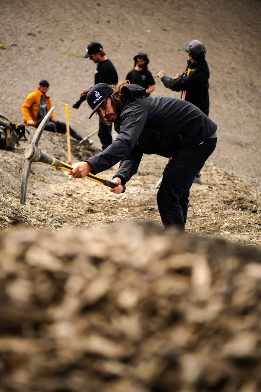 NV: What I like in general about building, is that it's really just a part of riding. For me, it's just as important. For freeriding, there's honestly not that much building going on. Like in BC, it was pretty raw, so we only cut in a few small things and the rest was all-natural. You kind of look at the mountain and figure out what's possible through experience and a little trial and error. Building new things always makes riding a lot more interesting for me.