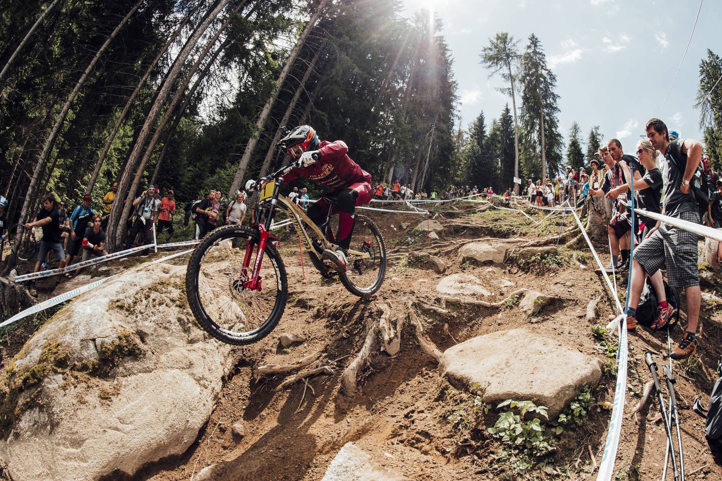 After a few weeks off from racing downhill bikes, the world’s best reconvened at one of the gnarliest tracks on the circuit: Italy’s Val di Sole, better known as the Black Snake. The track, which some would equate to one giant root and rock garden, certainly claimed some victims, including American favorite Aaron Gwin, who reinjured his thumb during a crash in practice, and many more.