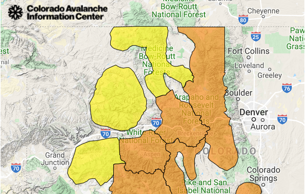 CAIC Website showing avalanche forecast conditions in Northern Colorado. CAIC photo.