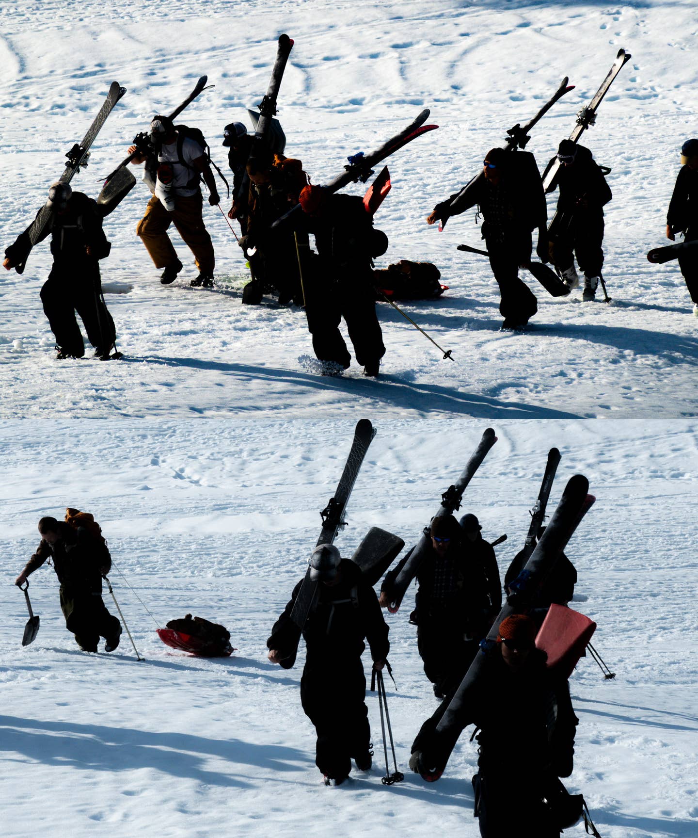 Cole: There’s a few aspects to it. I really wanted the crew to have a different feeling than your average “freeride” crew. When I first started trying to decide who I wanted to be a part of these videos, I was focused more on the boys’ personalities and style than their skiing ability. The goal was for them to feel different and feel more like a skate team than a ski team in a sense.