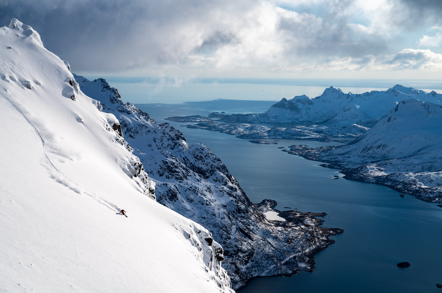 For anyone who knows the hut system in the Austrian or Italian Alps, the Lofoten Ski Lodge might seem familiar. It comes complete with cozy rooms in repurposed fisherman’s cabins, a fully stocked restaurant and bar, and warm hospitality centered around fostering community. But one thing sets it apart: instead of being atop a mountain or up some picturesque alpine valley, it lies on the southern shore of Norway’s Austvågøya island. Trade in the sights of sounds of a wintry mountaintop with those of a working fishing harbor. Luckily for skiers, those mountains are literally a stone’s throw (or a quick boat trip) from the front door, making access to mind-blowing riding a simple task.