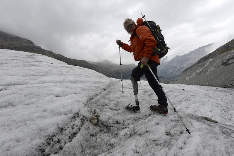 Rey "Reto" Keller seen here climbing the Morteratsch Glacier in 2016, prosthetic and all. Rey Keller photo.