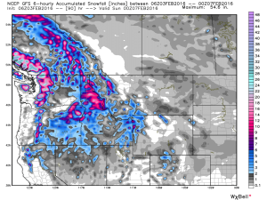 This system races across interior Washington (4-8) Idaho (4-8) Southern Montana, Wyoming and Utah. The Tetons stand the best chance of slightly higher amounts on Thursday (3-6-) where most spots in the northern Rockies grab light snow.