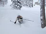 ** Jackson Hole local Anne Frost finds a powder stash trough the trees. **