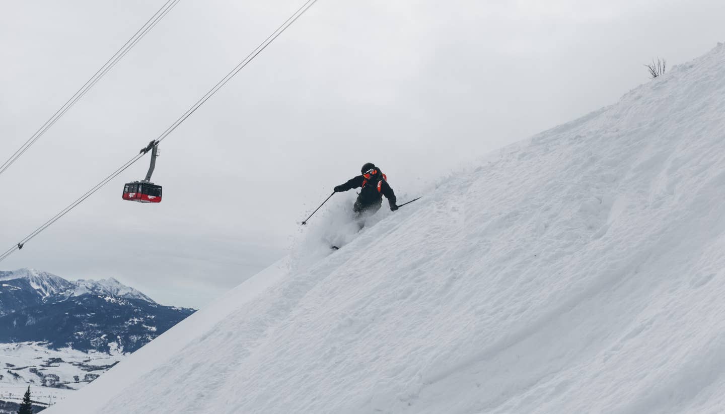 Griffin Post finds some powder under the tram. Justin Meyers photo.