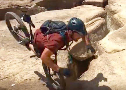 During this potentially not-so-wise mountain biking experiment of Yuri’s, Darwin was likely sitting in the corner, rubbing his hands expectantly. But the dude beat the odds, owning his fall. He was millimeters from cruising down one of Utah's cliff faces, a face not designed for intimacy.
