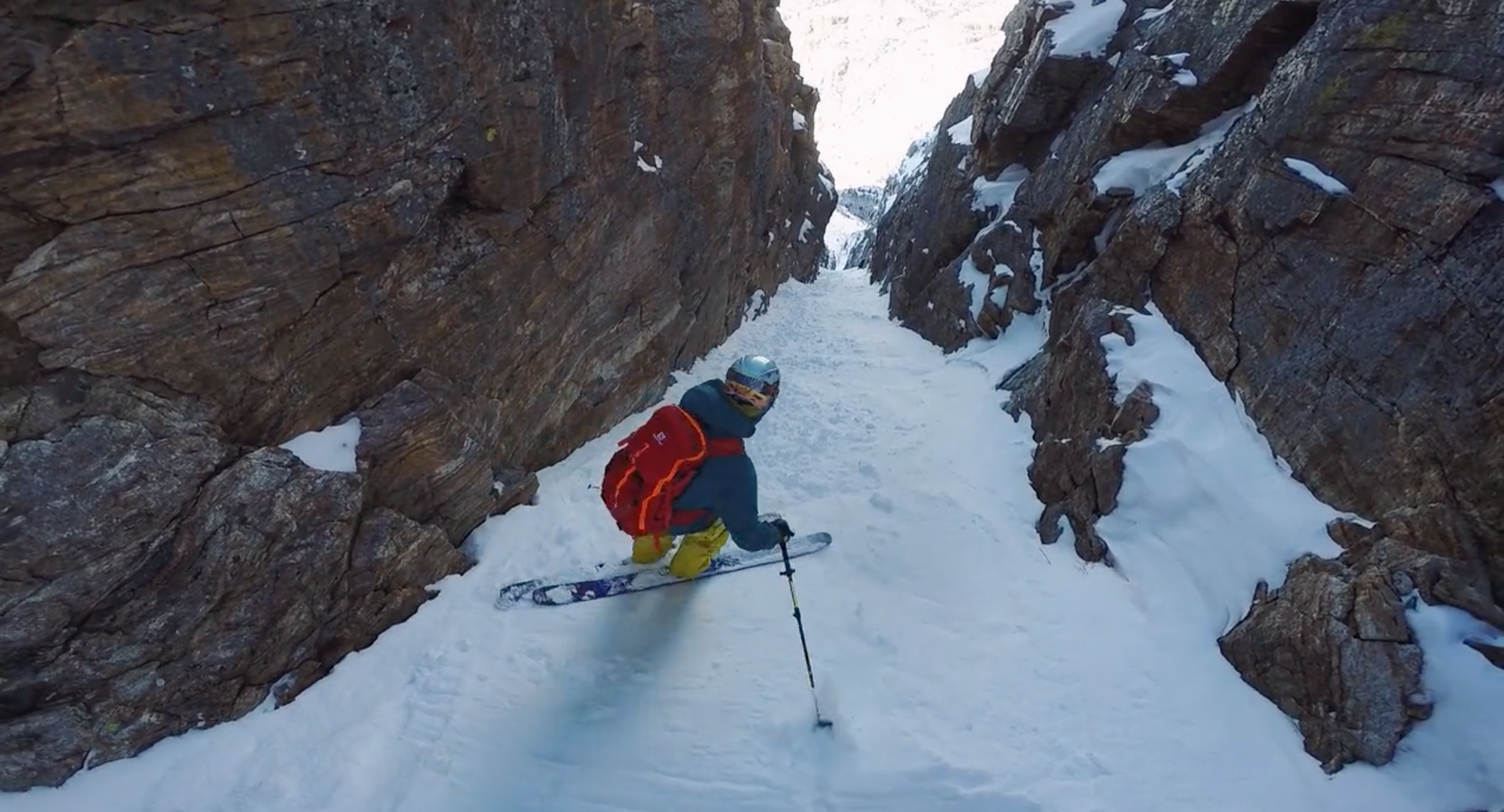 Terminal Cancer Couloir truly defines fall line skiing between two walls of rock. It's a hell of an approach and hard to get in good conditions, but Cody Townsend, Elyse Saugstad, and Josh Daiek shredded it anyway.