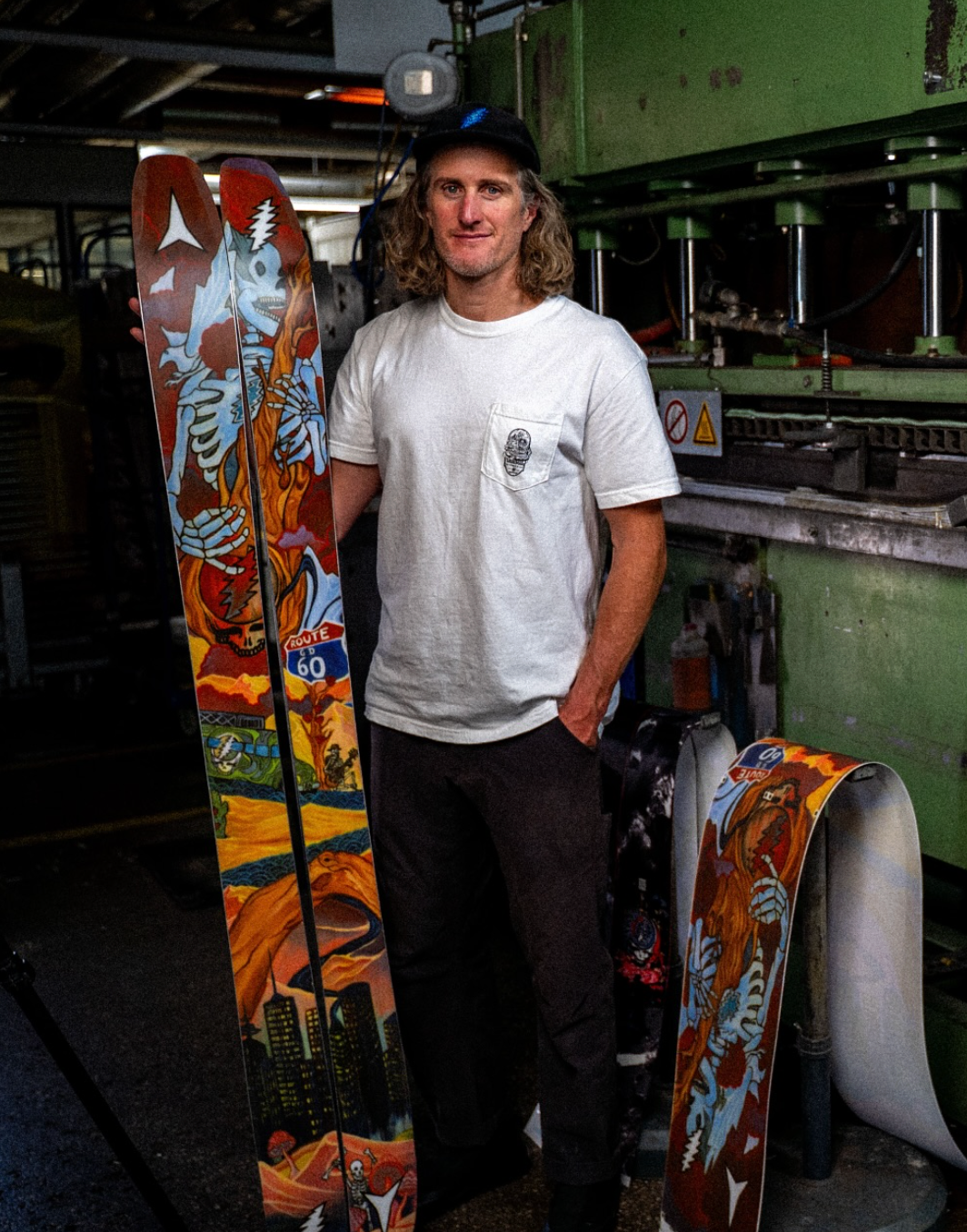The canvas for this killer art is the Atomic Bent 110. It’s already a staple in the quivers of core riders and a frequent feature in TGR films. Why? The Bent 110 is the ultimate blend of flotation and maneuverability. Specifically, its 110mm waist provides incredible lift in deep conditions. However, the ski remains nimble enough to navigate tight trees and tricky terrain.