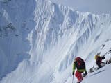 We hit the glacier running, we had a west face that was too good to pass up, and with 5 hours to go and 7 miles to skin and snowshoe we had the rest of the afternoons work cut out for us. Exhausted and low on water we made it to the West face Jeremy would later name “Freefall Wall”