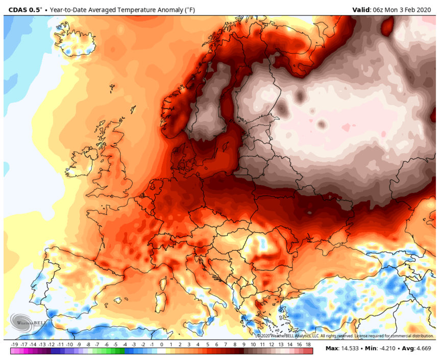 Sure, the spread of Covid-19 has been grabbing most of the headlines lately, but here’s a story that’s just as scary – Europe is experiencing by far its hottest winter on record. Yes, again. According to the European Union’s Copernicus Climate Change Service (C3S), the average temperature for December, January, and February was 1.4C above the previous record, set two winters ago. This coincided with the failure of wine harvests in Germany, serious flooding in the UK, and the fact that snow had to be imported for sporting events in Sweden and Russia. Helsinki, Finland experienced its first January on record without snowfall.