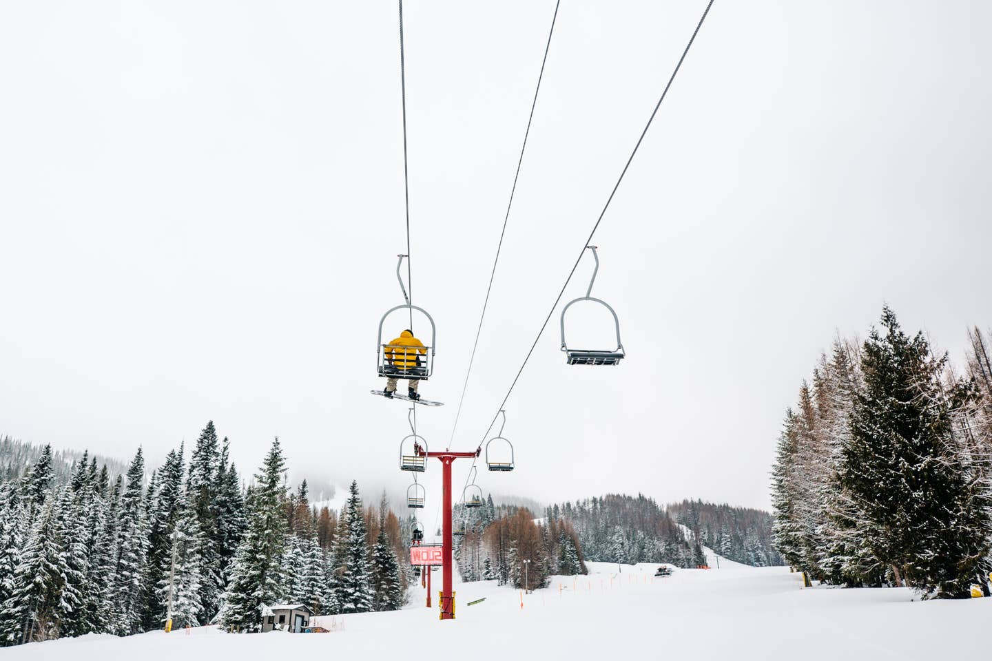 Driving up to the resort's parking lot, it was easy to see why this mountain stuck out to those original ski pioneers. Chewelah Mountain's summit sits at 5,774 feet and has primarily north-facing slopes. It rises like a grand pyramid, and with a base elevation at 3,923 feet, skiers and riders have a vertical drop of 1,851 feet at their disposal. Plus, the mountains are tucked too far east to get a maritime snowpack, meaning that "Cascade Concrete" (it's an acquired taste) is harder to find in these parts. The original ski area was founded and built completely by volunteer labor.