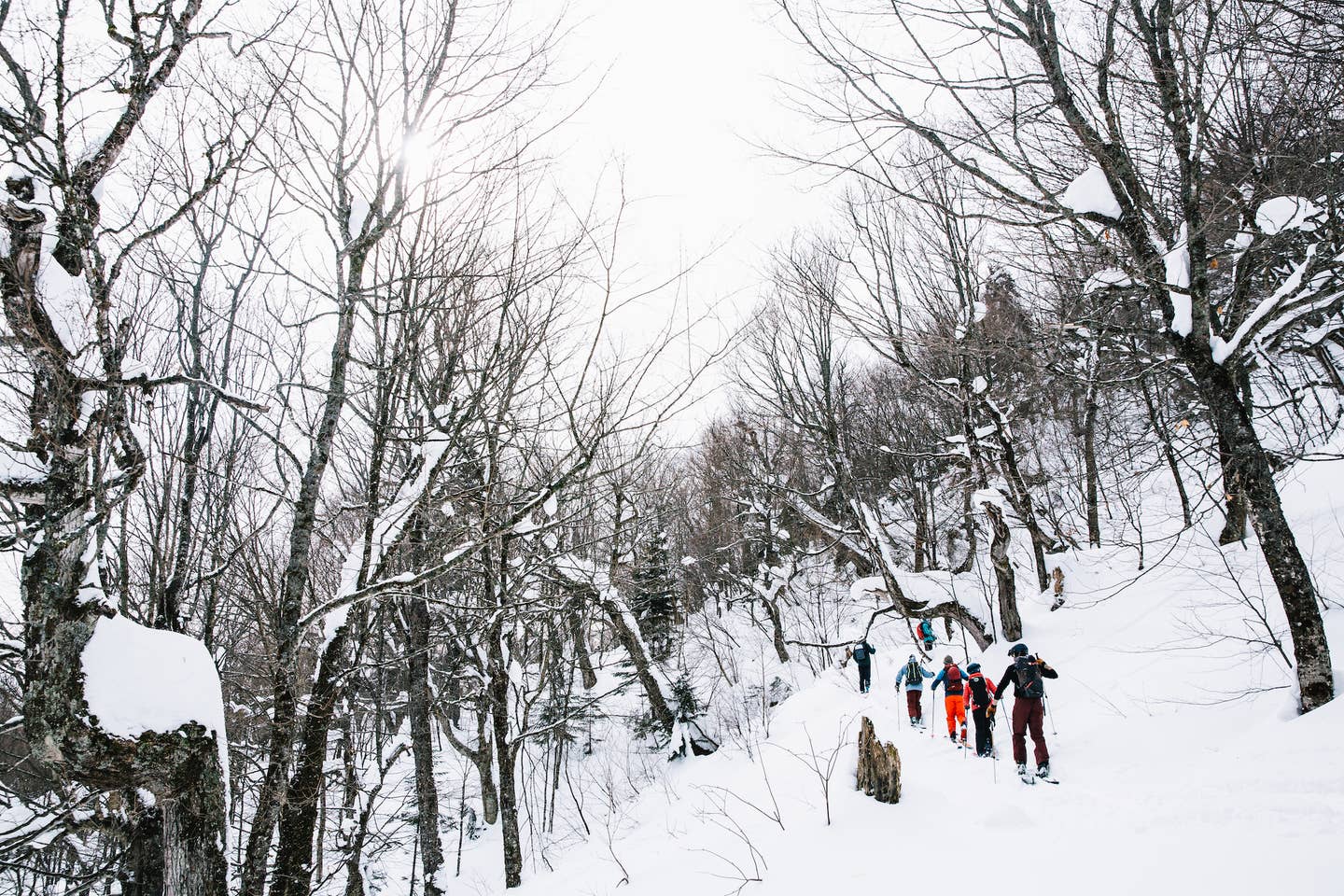 Recognizing the industry's push into human-powered adventure, Bolton opened their own Backcountry Skiing & Splitboarding center to make this incredible terrain more accessible for their guests. Their backcountry terrain consists of northeast-facing snow-accumulating zones that feature everything from mellow stands of old-growth white and yellow birch to adrenaline-pumping couloirs and cliff zones. Our guides today are none other than the DesLauriers family, who know these mountains perhaps the best. Some still call Vermont home, whereas others have moved West. Today, however, they're all back in Vermont for a little family reunion. These mountains and forests were their playgrounds, having grown up right at the base.