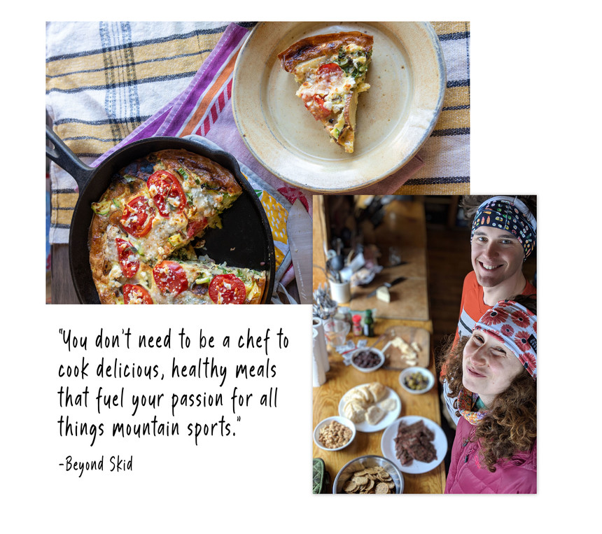 But it turns out that you don't have to have one or the other. You can eat well and still get after it the mountains, something I'm thankful to have learned from two pals Max Ritter and Lily Krass. That delicious frittata I was telling you about is an easy recipe from their new cookbook Beyond Skid, which seeks to demystify cooking for busy folks like you and me. Their target audience is a group of people who are lovingly known as skids. If you live in a mountain town like Jackson Hole, Truckee, or Crested Butte then you probably know a handful of them. They're the friends of yours that consider a package of saltines covered ketchup snagged from a McDonalds as a meal. They also probably live in their vehicle, and the only real recurring expense they have is a monthly gym membership, which provides them with a hot shower from 6-8 pm. If you're not a skid, don't stop reading, it's great news. It means that you probably have a fully functioning kitchen—not some sketchy propane-powered stove—and are fully capable of making anything in this 150-page book.