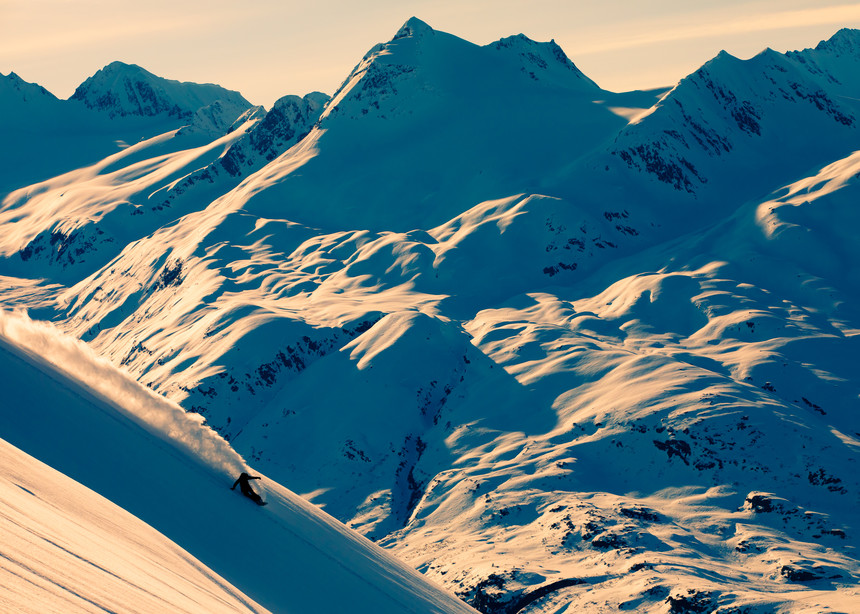 Keegan: I insert the person. A lot of it is anticipating what the person is going to do, so, I can say "You should go do a big pow turn over there," but if you're a skier and approach the mountain differently, it's hard to know if you're going to do what I had in mind. I can set up this entire frame. But if you do something different, I have to react quickly. With skiing, I haven't shot it enough to know exactly what the skier is going to do. That's the only difference. The thing with skiing and snowboarding is that it's so sick, even if it didn't work out the way I pictured, it's probably going to turn out cool.