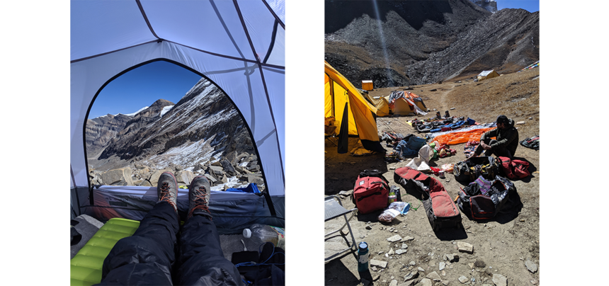 Single-wall two man tents are delightful for just one. All gear had to be repacked for the horses and yaks on the way out.