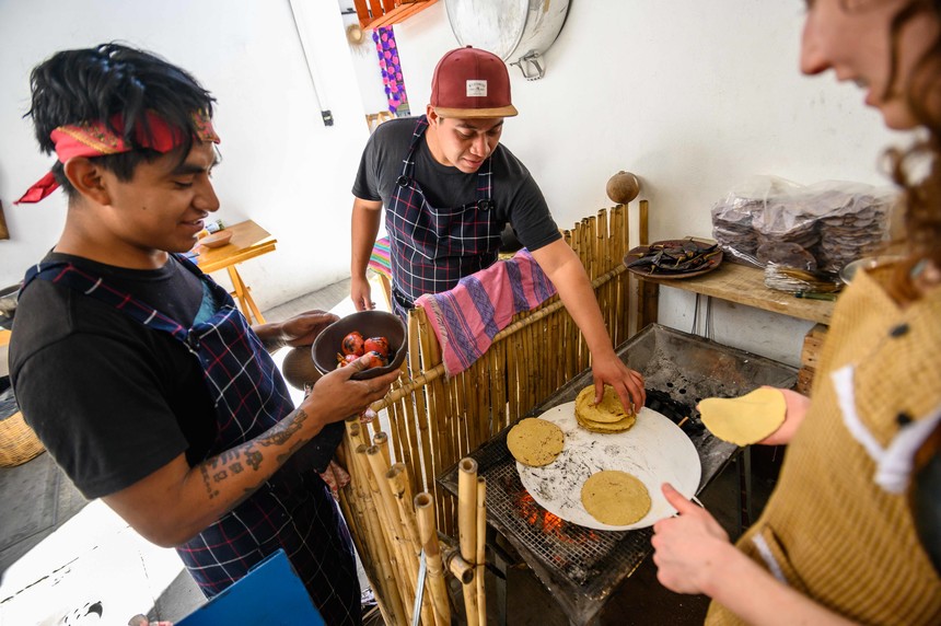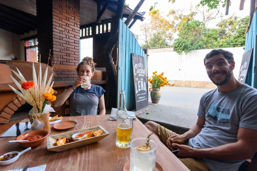 I'm overwhelmed. Already. It's a few days before Thanksgiving 2019 in a pre-pandemic world, and we've just sat down for our inaugural breakfast in a tiny side-street café in Oaxaca City. The menu in my hands is chock-full of things I'd like to indulge in, and of course I can't decide between the eight different kinds of hot chocolate listed, so I ask for some advice. Our group consists of my partner Lily, myself, and our new friend and local mountain bike pioneer Alvaro Gutierrez. Fresh off about as convoluted a trip down here as we could have mustered, we're famished and admittedly a bit overwhelmed by the culture shock of landing in one of the most vibrant cities in Mexico.