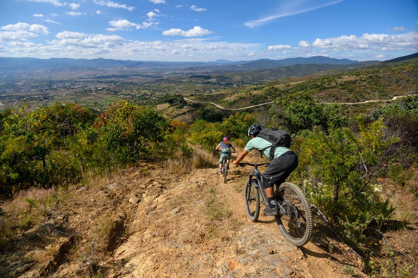 In some way, the ancestors celebrated on that day are what had made this trip possible. Oaxaca City is an ancient metropolis - one of the oldest on the continent, with the nearby Monte Alban archeological site dating back to 450 B.C. The local indigenous cultures, namely the Zapotec and Mixtec people, have lived in the Oaxaca Valley and the surrounding mountains since long before the Spanish colonization, creating vast networks of trails into the Sierra Norte range that towers above the city. For the past few years, Alvaro and a team of local riders have been putting in the work digging and shaping trails to turn these mountains into a world-class bike destination, and that's exactly what we came here for. The Sierra Norte rise out of the north side of the massive Oaxaca valley, with a staggering relief of nearly a vertical mile, with hundreds of miles of shuttle-able singletrack waiting to be devoured. Alvaro indulges us, introducing us to these mountains by way of a few days of shuttle runs to get us acclimated in the Etla and Ixtepeji areas.
