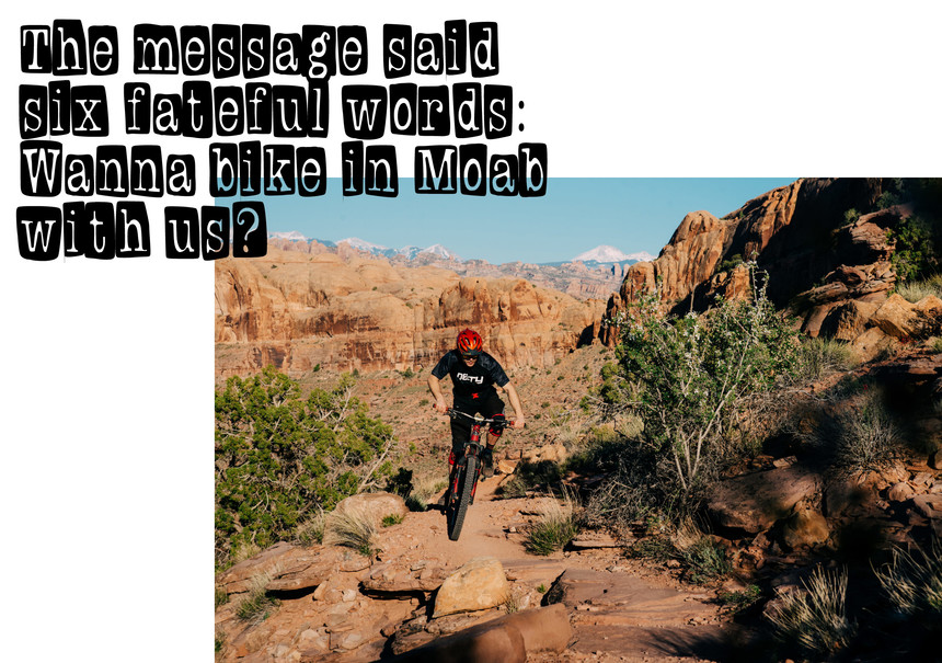 This whole adventure was prompted by an unassuming google chat message. My work desktop chimed at me, and when I opened the chat with my co-worker Max it said six fateful words: Wanna bike in Moab with us? Bewildered, I stared at the proposition unsure of what to say. At this point, I had been working at Teton Gravity Research for about three months and quickly bonded with the other writer Max and our developer Brian because we loved talking about all things mountain biking. It was the only thing we ever talked about. It probably annoyed the heck out of everyone. But the thing is I didn't feel like a "real" mountain biker, at least not one worthy of going to Moab, one of the most iconic places to ride in the U.S.