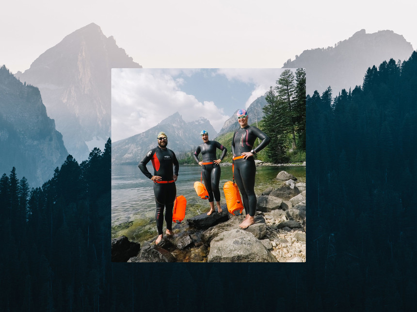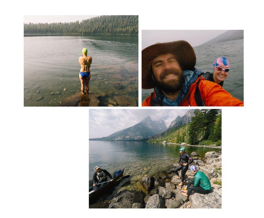 Their very first mission was something they nicknamed the Fi-fecta. It's a five-part lake swim tucked into Grand Teton National Park comprising Delta, Surprise, Amphitheater, Bradley, and Taggart lake. It consisted of a lot of hiking and cold water swims, but all they needed was one long day to get it done. "That swim really speaks to Jill's love for adventure. She gave it a name, and we had such a fun crew for it," Jo reflects.
