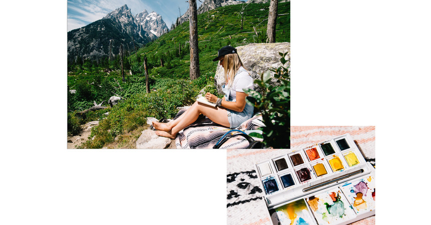 No trip to Jackson Hole is complete without a visit to Grand Teton National Park. It's an oasis for outdoor adventures. In the winter there's an endless amount of projects and lines to be skied. When the snow melts, it reveals miles of hiking paths that weave through canyons, past streams, and towards the tops of these craggy peaks. There's no mountain biking allowed in the park, which means Micayla and I will use this as an opportunity to catch up on our art.