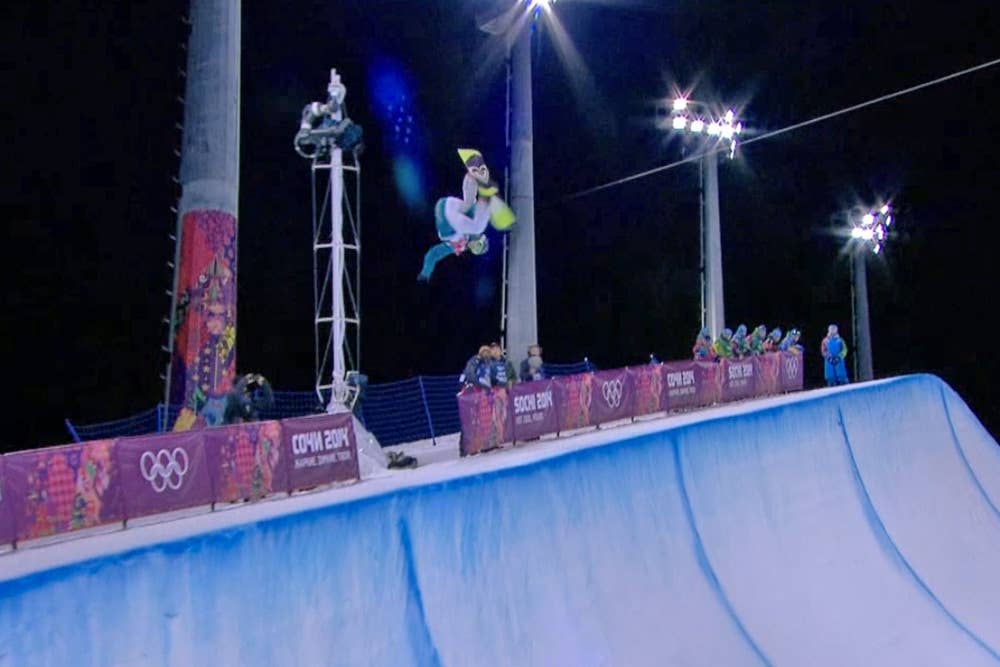 The nighttime conditions were said to be better than those at the men’s halfpipe finals due to the lower temperature that kept the pipe firmer than the sugary mess that it was during the men’s comp. But despite the more favorable weather, the snow still sucked, and the pipe looked like it had been cut by a volunteer after he’d drank too much vodka and decided to operate a faulty Zaugg with no training. Hannah Teter tweeted: “This is the sketchiest halfpipe finals I’ve seen in a long time.” #Sochiproblems.