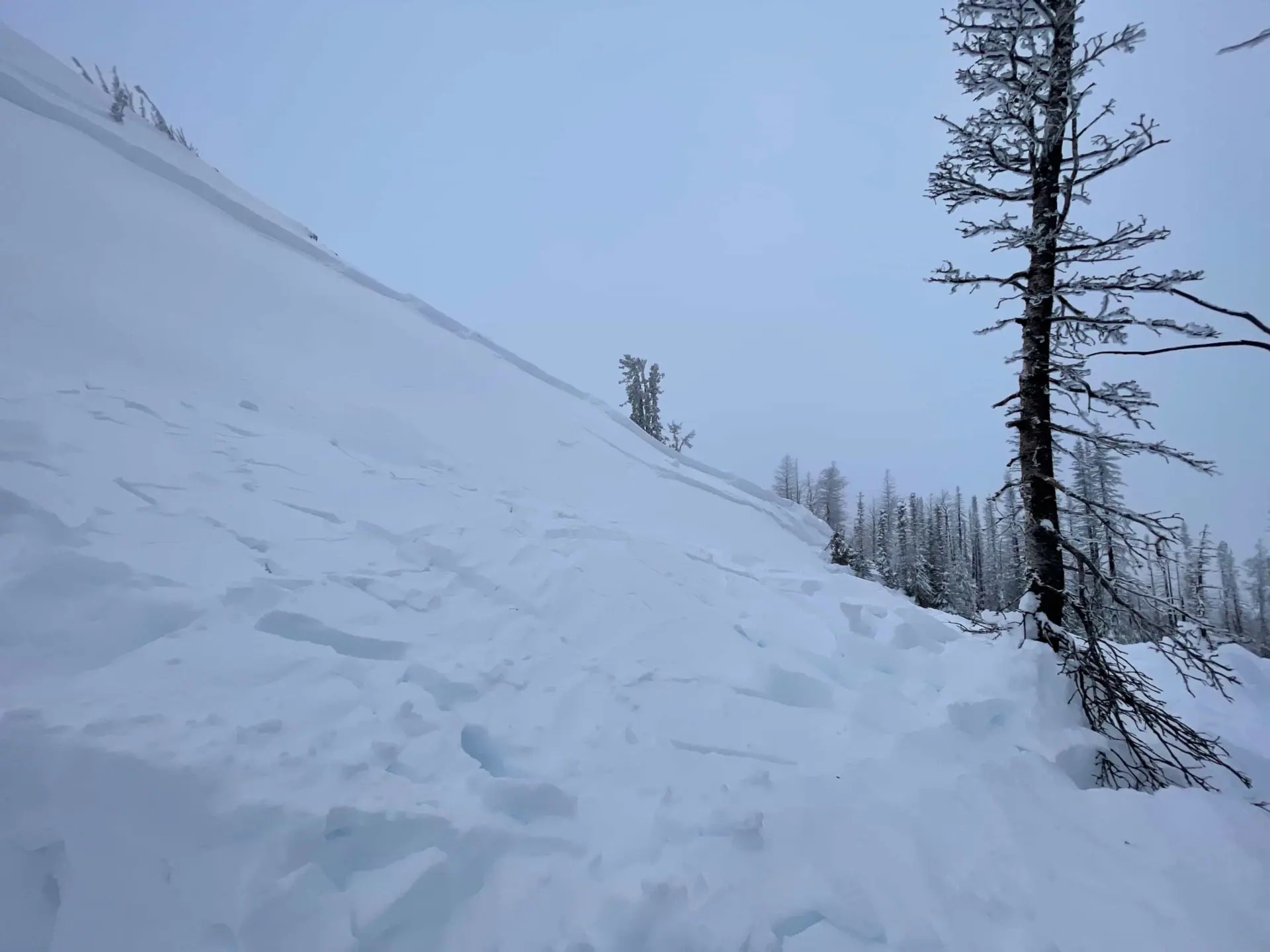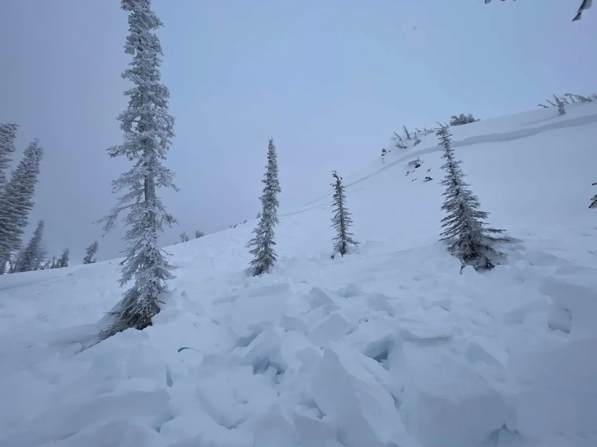 Witnesses reported heavy wind-loaded slopes and described the slab breaking as the bikers attempted to ride back up. The incident occurred around 2 p.m.