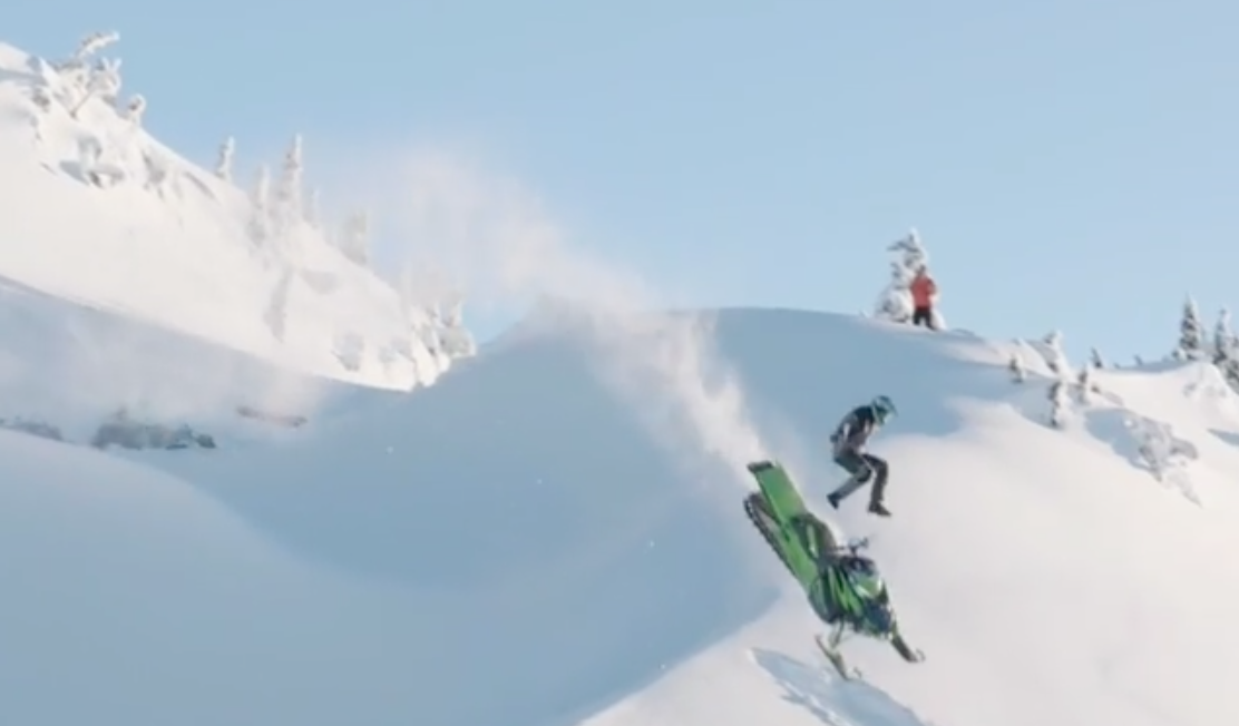 Snowmobiles are amazing machines. They'll whip you up the mountain faster than just about anything except a helicopter, and they look super badass on the back of your truck. They inhabit a weird zone between a small motorized vehicle like a dirtbike and a full-sized vehicle; they can be moved under human-power, but not easily. In terms of getting airborne, they are one of the larger chunks of metal which people regularly do flips 'n shit on.