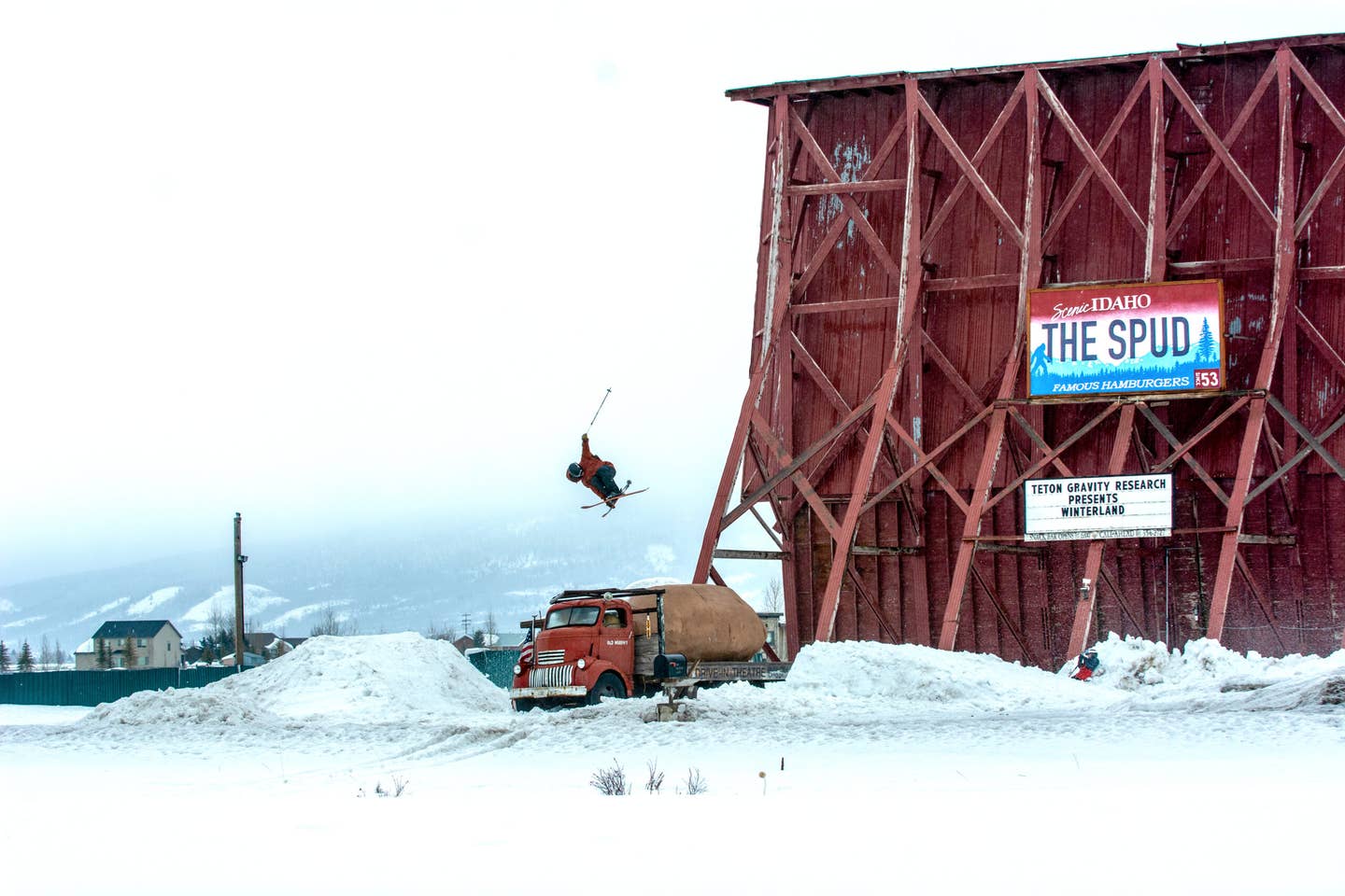 February 2019 was a generous month in terms of snowfall for the Tetons. With 100 inches on the mountain by Valentine's Day, it turned into a skier's dream. What better time than to session big lines all over the mountains? Of course, newly minted Teton local Tim Durtschi wanted to go for a little something different. Already no stranger to big jumps, Durtschi wanted to test his skills on something fresh: flipping the infamous Spud at the Spud Drive-In Theater.
