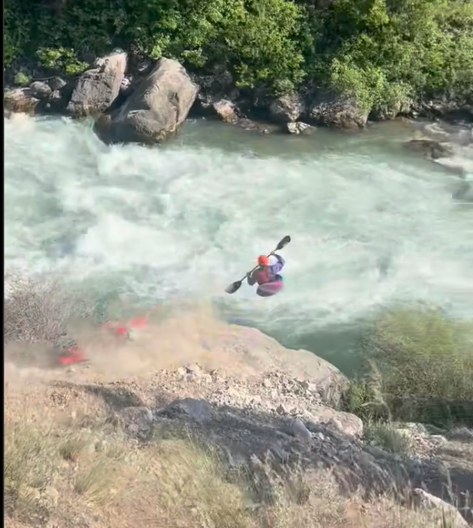 When the typical trail to the river is out of the question, what do you do? If you're Carver Culbeck, you find a new way down. This clip shows Carver pointing his kayak down a steep, rocky slab and sliding directly into the river below. It’s a masterclass in creative problem-solving and pure, unadulterated commitment.
