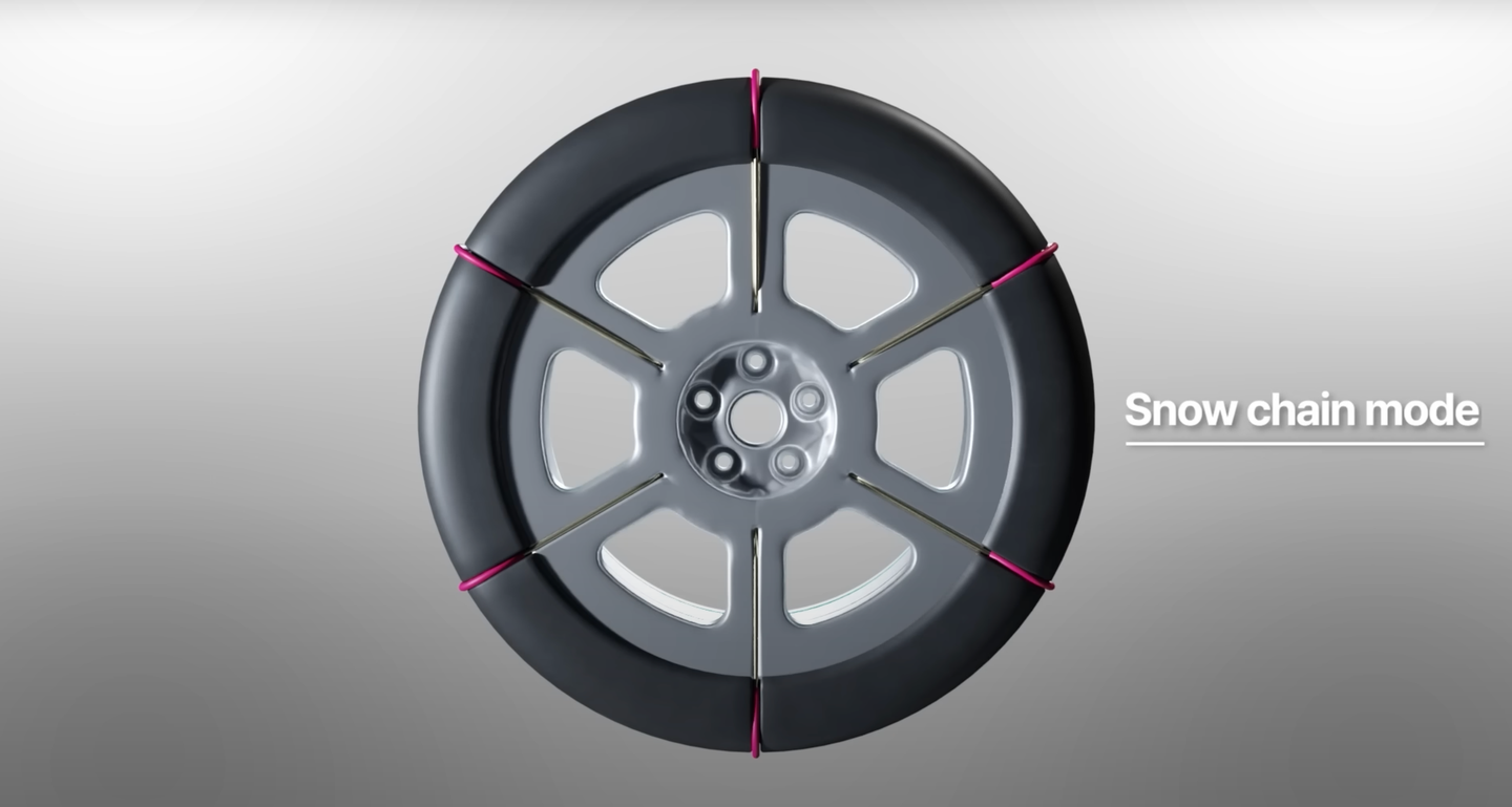 This technology will feature snow chains built into tires, designed for repeated use without the need to add and remove chains.