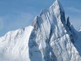 **This is the North face of the Devils Thumb and I was lucky enough to be the first to ski off the ridge just below the cliff face on the left of the photo.**