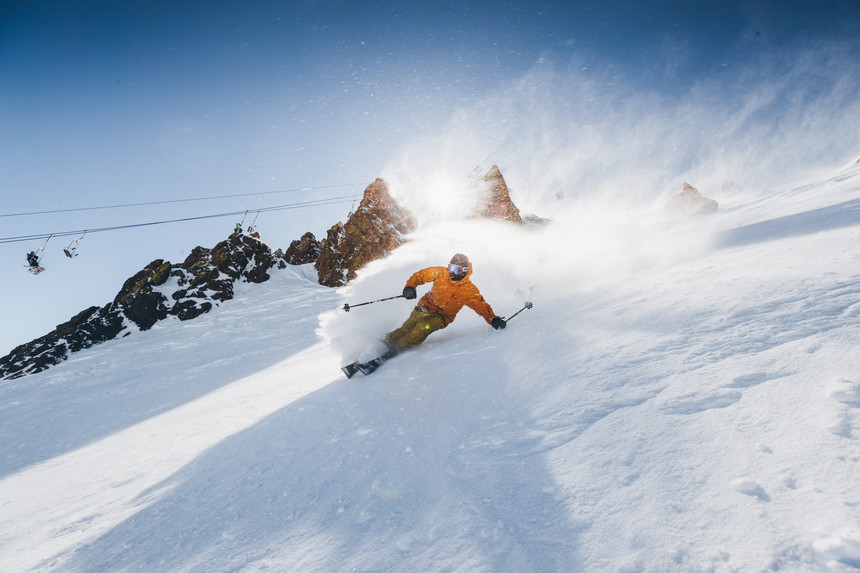 Engerbretson taking advantage of the classic wind buff snow you'll find under chair 23. TGR photo.