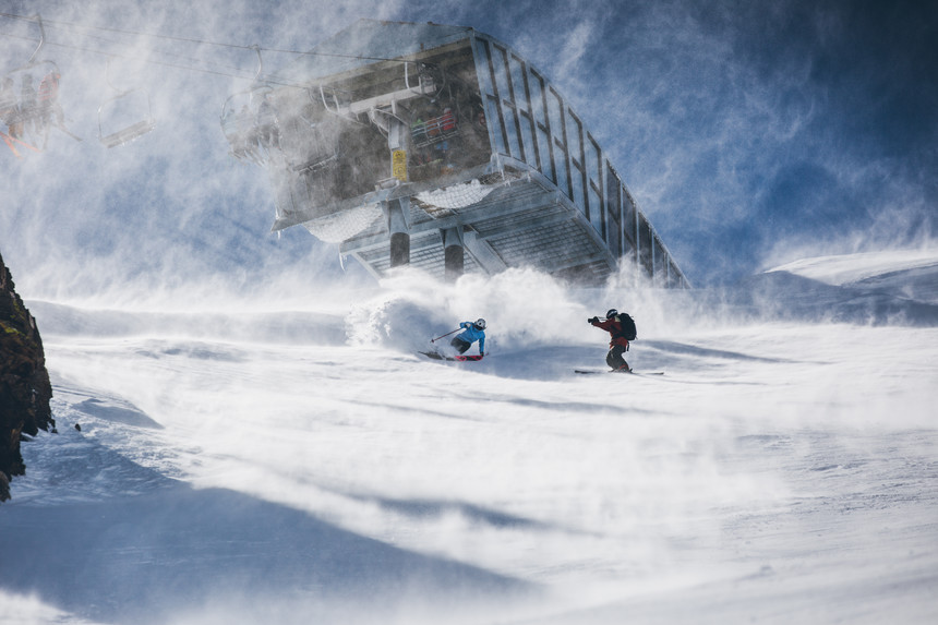 The wind—which buffs the snow oh so nicely—didn't keep Mayers from grabbing the shot. TGR photo.