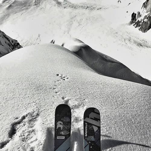 My favorite memories are mostly to do with my own personal mental struggle to get back to the frame of mind I had before my injuries. It was a battle at first to overcome but eventually I started to feel like my old self again. One memory that stands out the most to me was on the last day of my leg of the trip. I had spotted this face days before that had two beautiful spines on it. The face was super north-facing and didn't get light until the very end of the day. After talking with Sage about it we decided to try to go for it on that last day. The biggest challenge was the time in which it got light because the heli had to return to base just minutes after the face got light. We managed to pull it off and it was one of the best lines of the trip for both Sage and myself.