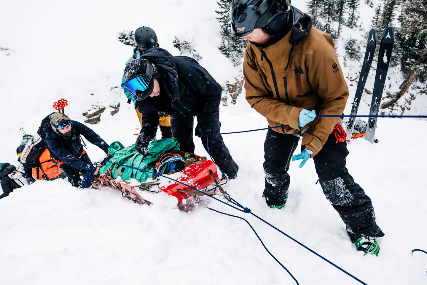 The call came by surprise in the middle of an indoor medical skills workshop. Each group quickly came together to make a game plan, and assign roles for who would be in charge of each aspect of the rescue. This was an intensely hands-on learning exercise, so instructors encourage athletes to step out of their comfort zones and work parts of the rescue they might not be very comfortable with. Within minutes, each team geared up and mobilized, heading up the mountain to begin their rescue drills.