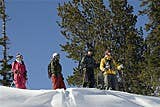 A few crotch-deep postholes and a lot of sweat later we were on top of the day's zone. With a bunch of short, steep chutes and some fairly cold, north-facing snow, the plan was for the athletes to hit several lines, hiking up after each.