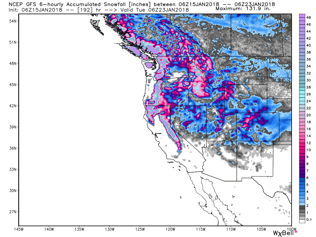 Moderate amounts are likely for other areas in the west including the Rockies and even the four corners in the 7-10 day forecast. Idaho will see heavier snowfall especially Thursday/Friday and Sunday/Monday.