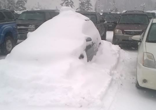 Oliver's car in the Mount Baker Ski Area parking lot after two nights lost in the backcountry. Jake Lint photo.