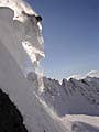 With that in mind we stuck mostly to short and steep faces with good outruns and started the long process of gathering snow info and testing slopes by digging snow pits, dropping cornices, and cutting the slopes. Basically I consider the snow pack guilty until proven innocent and expect every slope I touch to slide.
