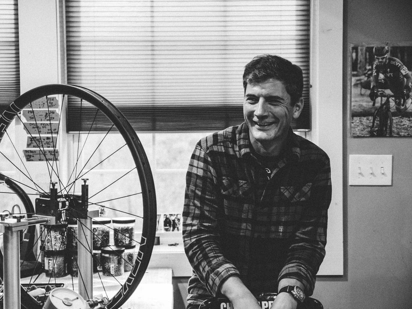 Fast forward a few years, and now Chabot is cranking out handbuilt wheelsets nearly every day, including road, cyclocross, and several types of mountain bike wheels. His process is still all about perfection, and a look into his factory (a tiny workshop in the attic of a Vermont farmhouse) confirms this. There are dozens of carbon wheels in various states of assembly lying around, and what Chabot calls “the best truing stand money can buy” bolted to a table in the center. The truing stand in question, manufactured in Germany by P&K Lie, costs upwards of $2000 and has a tolerance down to 0.05mm. That’s incredibly small, so small that Chabot says it picks up where the rim mold sometimes leave small bumps of residue on the rim edge. On top of the truing stand, he has a tool to cut custom-length spokes and swears by his incredibly accurate spoke tension meter. But it's not the tools that make a great wheelbuild, it's the hands that operate them and the eyes that make sure everything is done correctly.