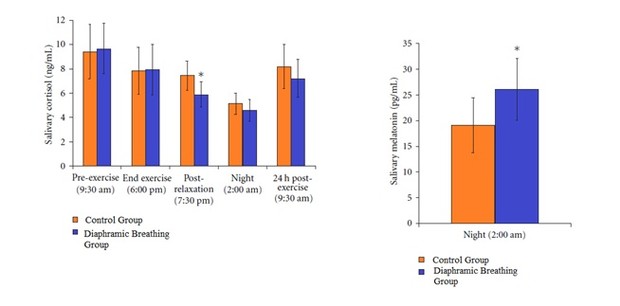 In the study, 16 athletes where put into two groups. Both groups went through an intense 8 hour mountain bike ride. After the ride, tests were taken to record everyone’s exercise- induced oxidative stress levels. Oxidative stress is a condition where there is an increase of oxidation in cells, along with the production of the chemical cortisol, they cause free radicals that degenerate the cells. Afterwards, one group did a deep diaphramic breathing meditation and the others just simply relaxed; both in similar rooms. After an hour they were tested again. Here are their findings: