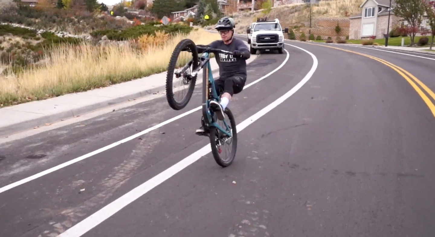 Mitch Ropelato is a madman. The Utah-based mountain biker has been cranking out edits showcasing his unique bike handling skills, but his latest one stands out over the rest. Hopping aboard his bike in downtown Salt Lake City, he destroys the city streets and pulls one of the most crazy manuals ever done on a bike — and smiles for the camera while doing it.