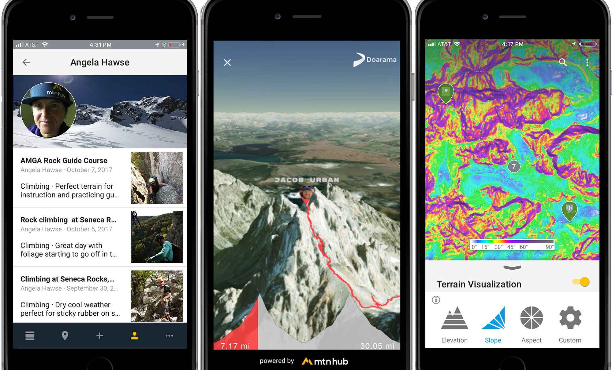 Using 3D tools from Doarama, the app now features the ability to follow user tracks on a worldwide 3D map. Topographic maps are cool (and useful: The app should not substitute common sense in bringing an old-fashioned topo map with you in the backcountry), but 3D mapping is simply a much more powerful tool for trip planning. MTN HUB’s version of this technology allows users to see these tracks in-app, and completely control the view through simple maneuvers on their screens. This tool could prove incredibly useful in planning trips into unknown areas, and allows users to get a better feel for the terrain they will travel through.